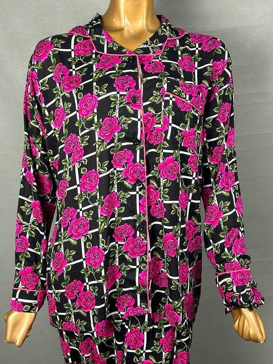 Pink Rose Linen Printed Night Suit For Women WNS18