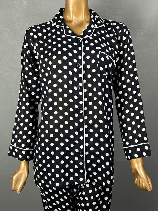White Polka Dots Linen Printed Night Suit For Women WNS32