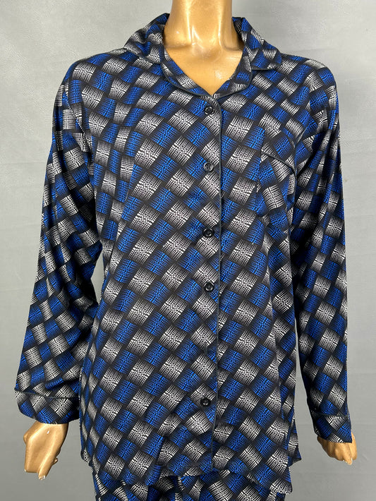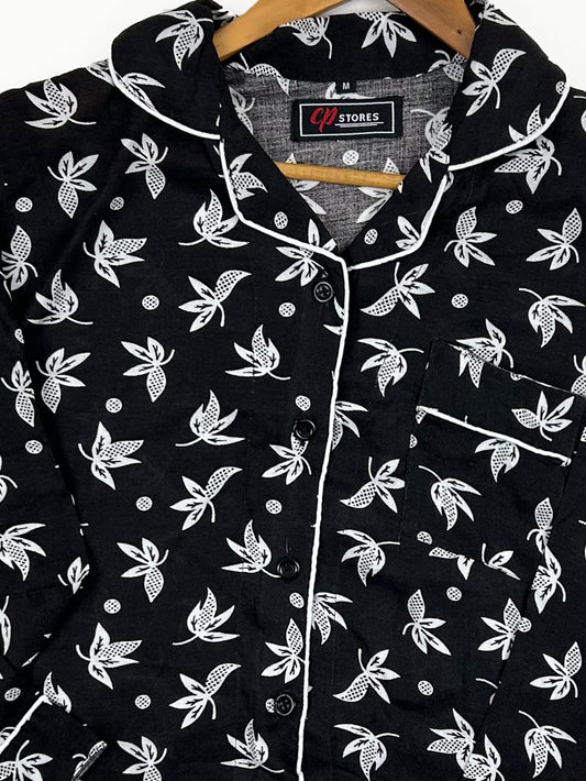 Midnight Blue Linen Printed Night Suit For Women WNS16