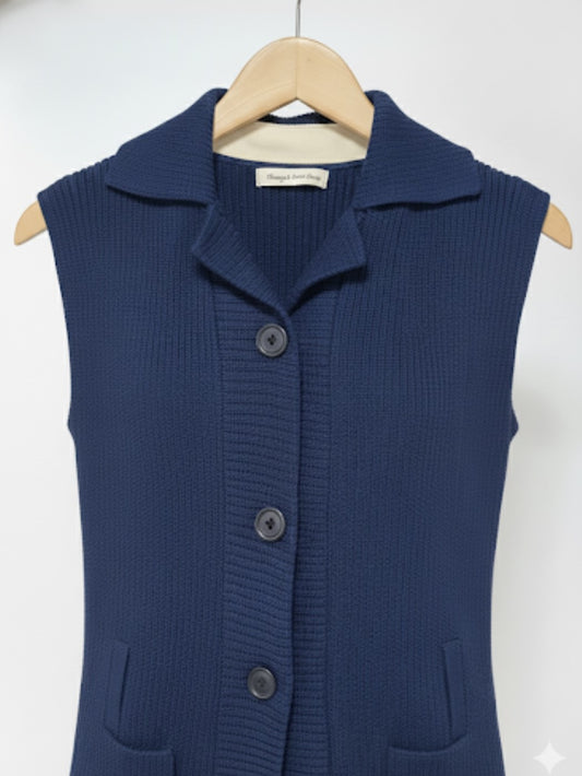 Navy Blue Sleeveless Sweater For Women WSW38