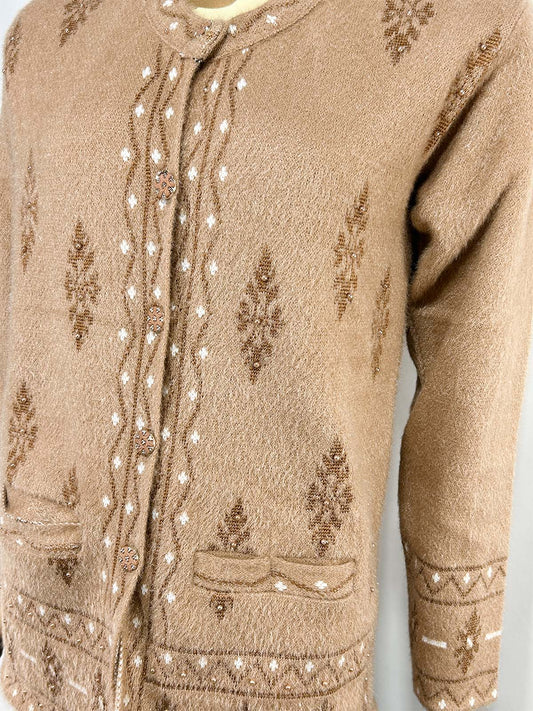 Brown Rabbit Wool Embroidered Full Sleeves Sweater For Women WSW68