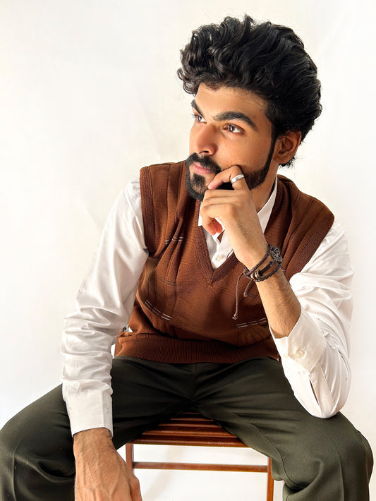 Rust Brown Sleeveless Sweater for Men SH MSW14