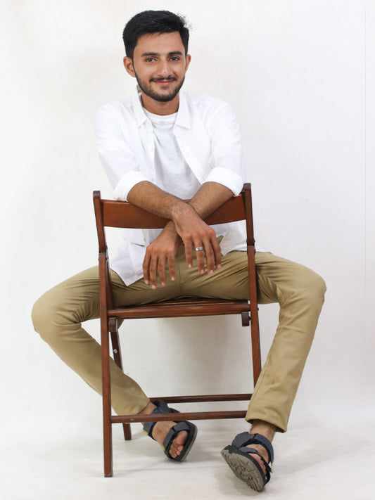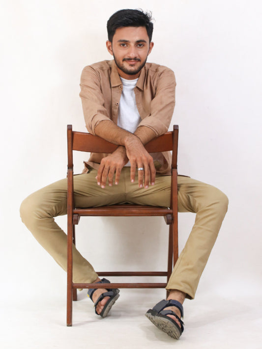 MCS20 Men's Textured Self Cotton Casual Shirt Brown