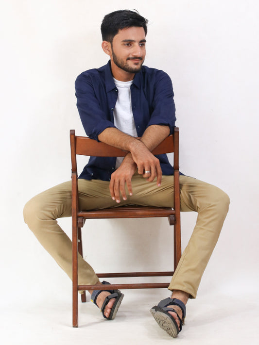 MCS17 Men's Textured Self Cotton Casual Shirt Navy Blue