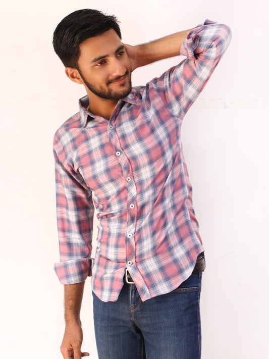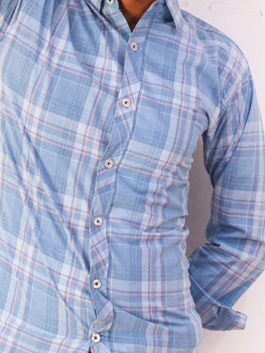 Light Blue Checks Casual Shirt For Men AZ MCS25