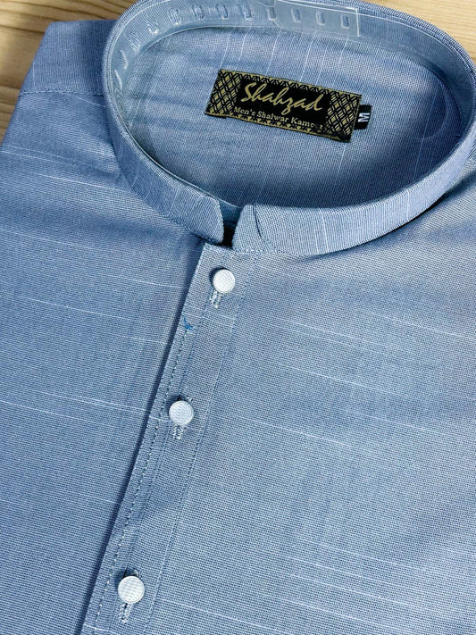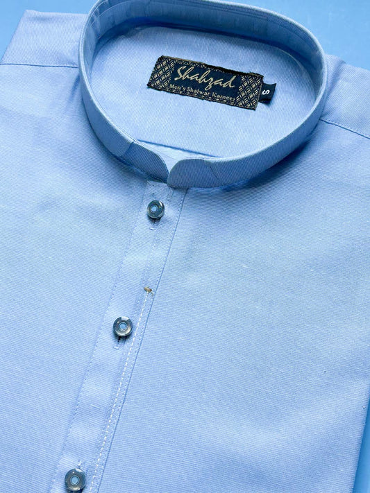 973-2 Light Blue Stitched Kurta Pajama Suit For Men MSK433