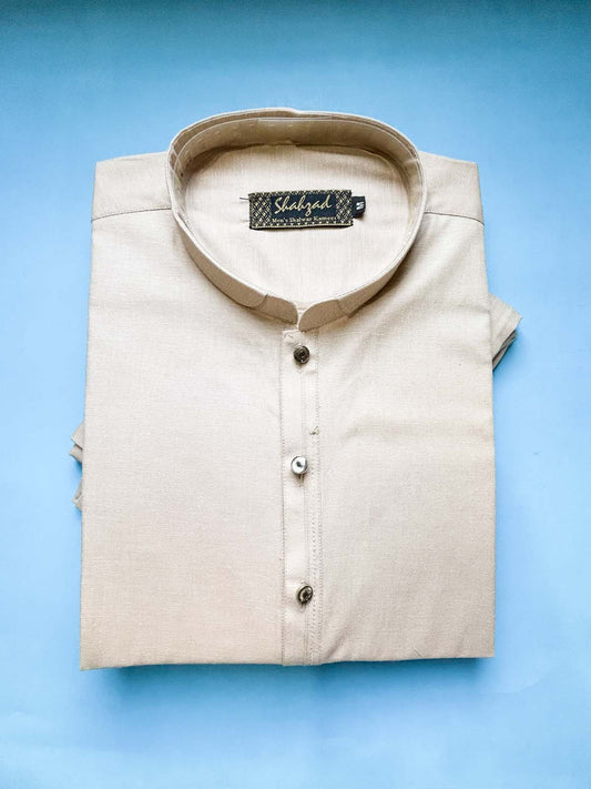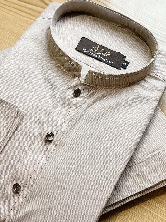 975-1 Beige Stitched Suit Sherwani Collar Kameez Shalwar For Men MSK438
