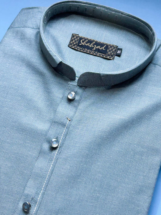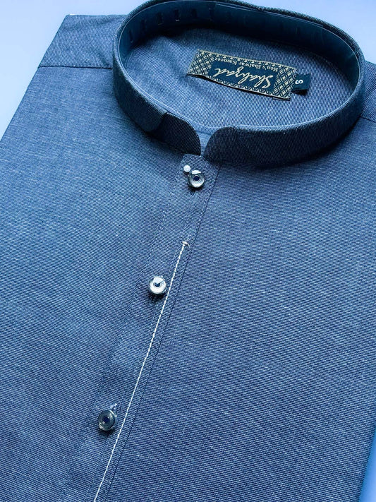 788- 08 Sea Blue Stitched Suit Kameez Shalwar For Men MSK205