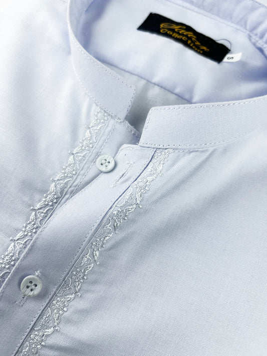 MSK74 Men's Kameez Shalwar Stitched Sherwani Collar Suit Neel White