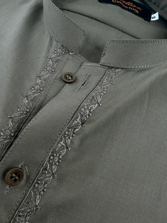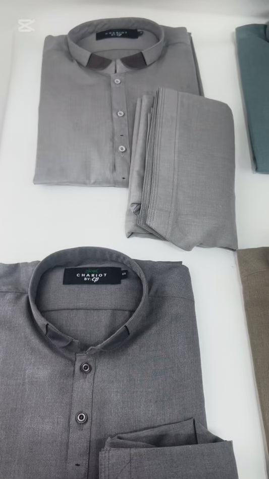 769- 01 Charcoal Stitched Suit Kameez Shalwar For Men MSK214