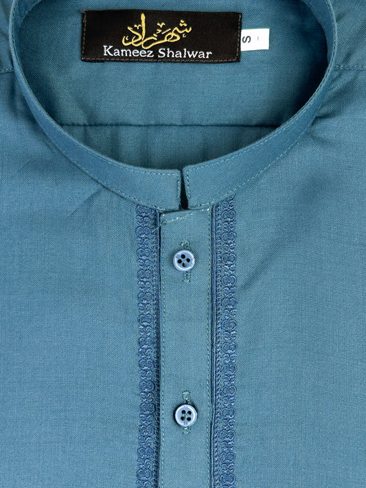 750- 05 Light Ferozi Stitched Suit Kameez Shalwar For Men MSK196