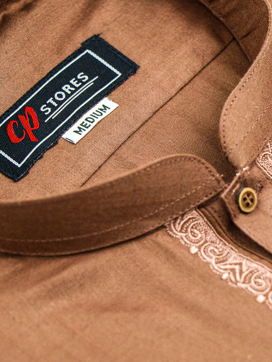 788- 06 Dark Brown Stitched Suit Kameez Shalwar For Men MSK201