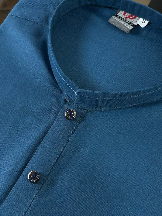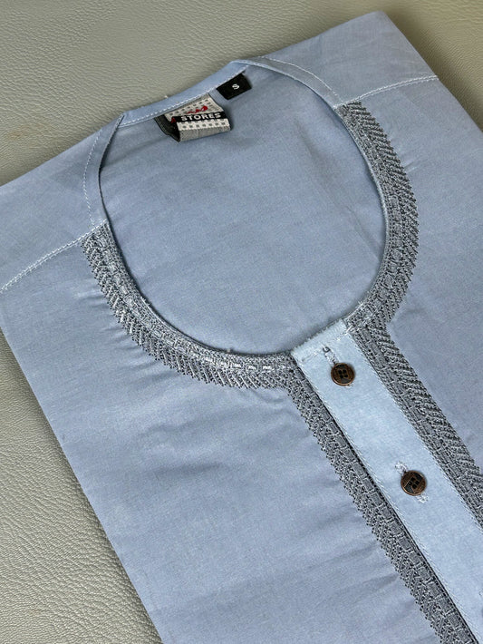 AM 100% Premium Cotton Kurta Sherwani Collar for Men Neel White
