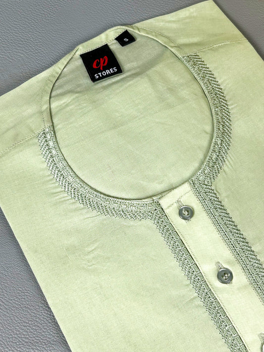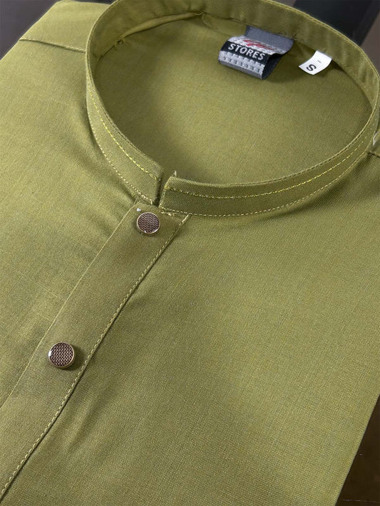 100% Premium Cotton Kurta Sherwani Collar for Men Light Green