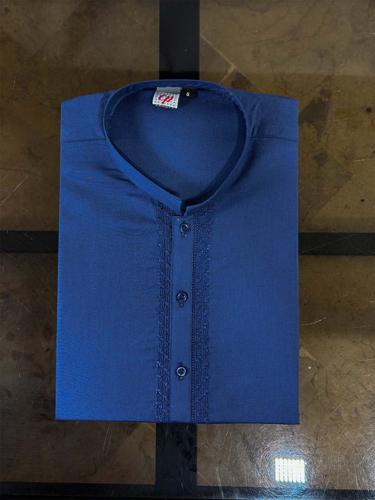 Blue 100% Cotton Magsi Collar Kurta for Men