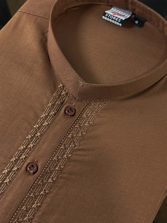 100% Premium Cotton Kurta Sherwani Collar for Men Dust Brown