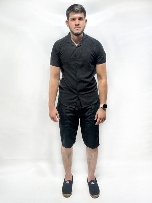 Black Printed Linen Co-Ords Set For Men MTS