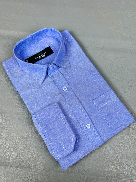 Men's Chambray Formal Dress Shirt Blue MFS418