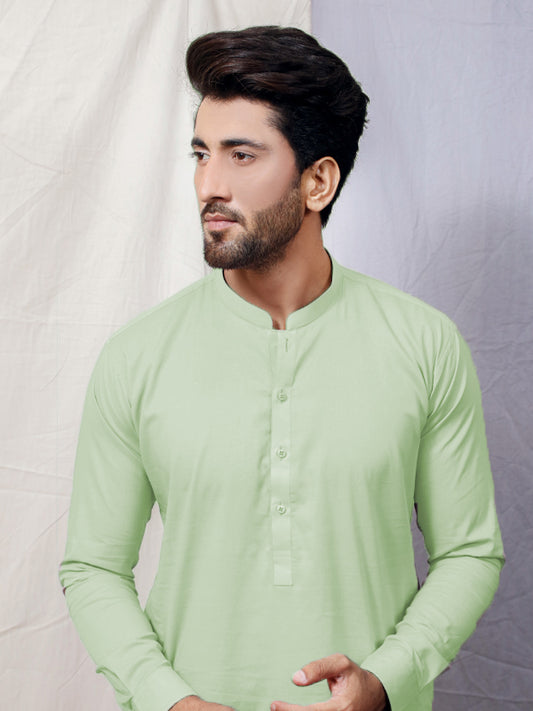 806 Men's Cotton Kameez Shalwar Stitched Suit Light Green 05