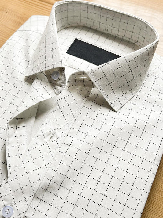 Off White Checks Formal Dress Shirt For Men MFS497