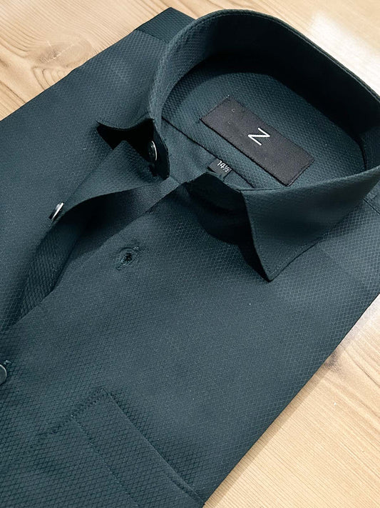 Dark Green Textured Formal Dress Shirt For Men MFS502