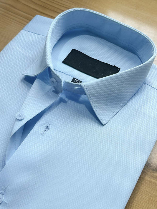 Sky Blue Textured Formal Dress Shirt For Men MFS503