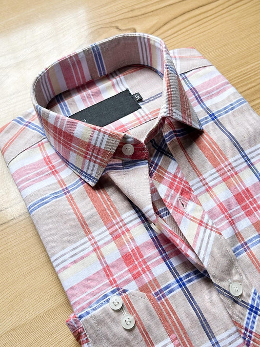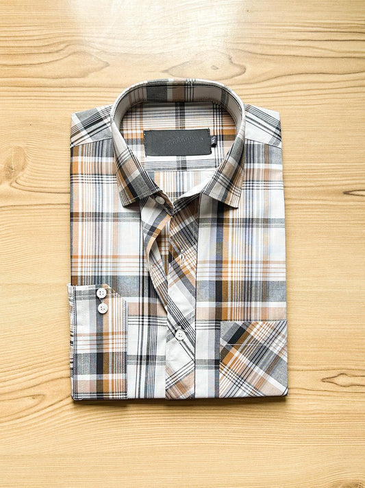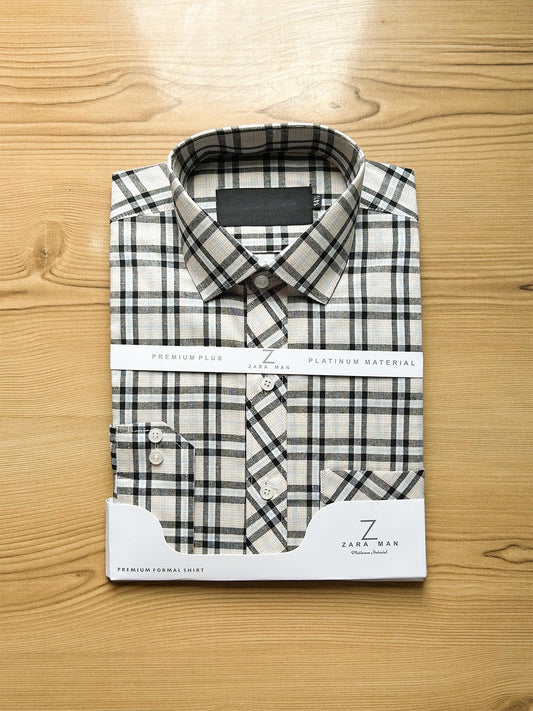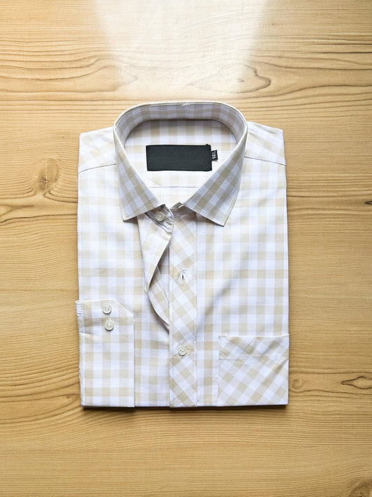 Beige Checks Formal Dress Shirt For Men MFS499