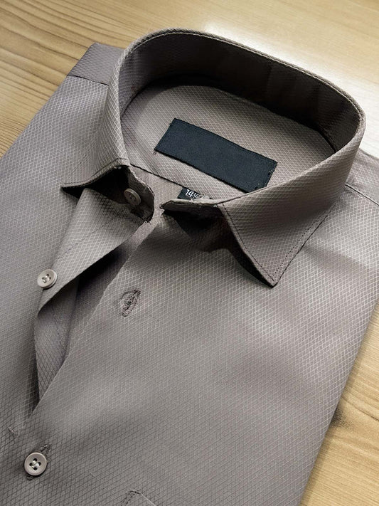 Brown Textured Formal Dress Shirt For Men MFS504