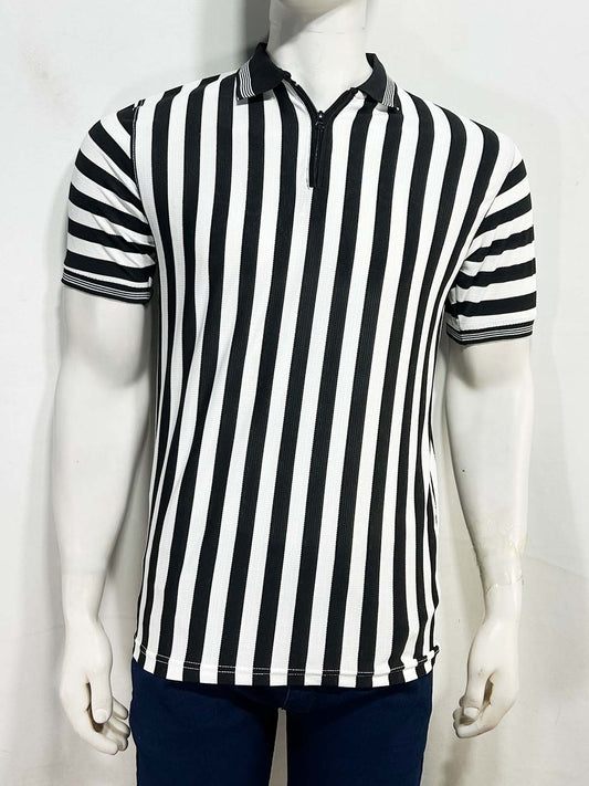 Black Striped Polo T-Shirt For Men MTS494