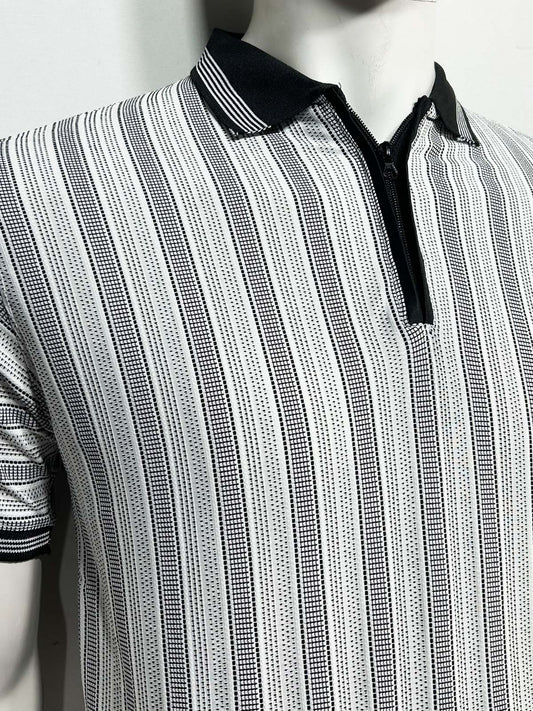 Grey Striped Polo T-Shirt For Men MTS495