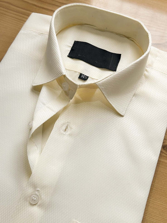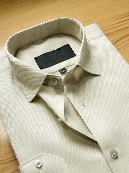 Cream Textured Formal Dress Shirt For Men MFS506