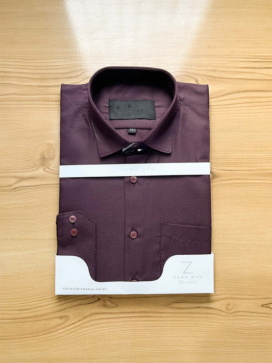 Burgundy Textured Formal Dress Shirt For Men MFS507