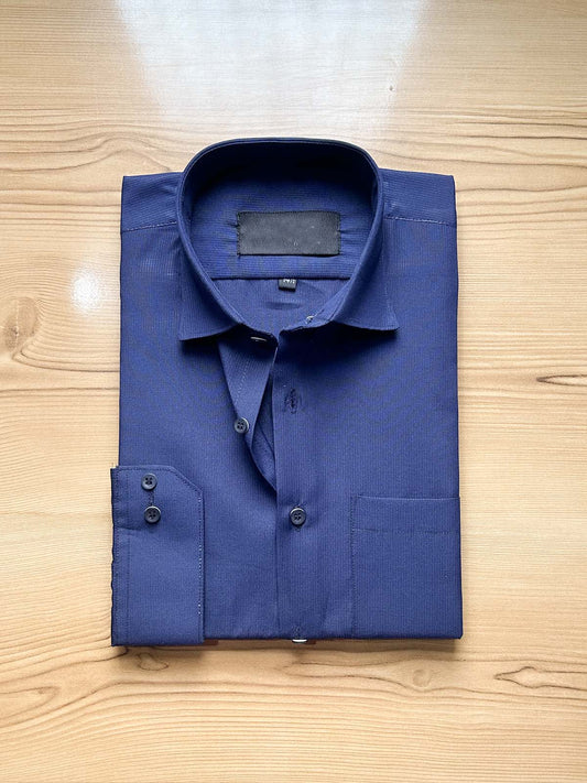 Blue Textured Formal Dress Shirt For Men MFS509
