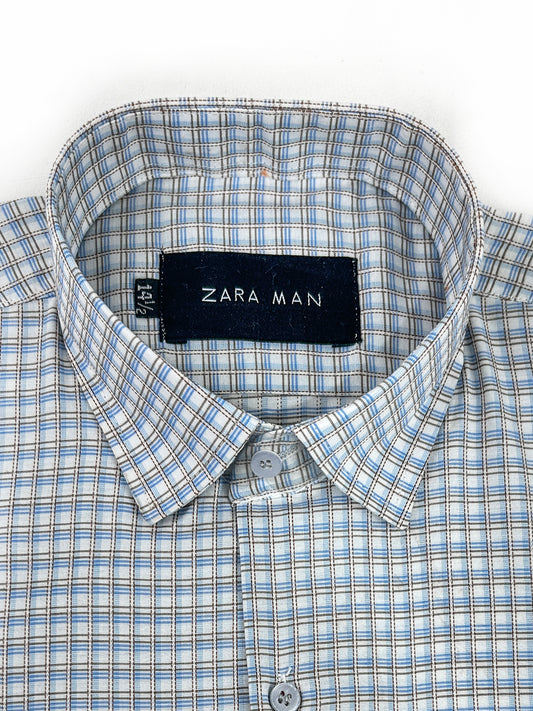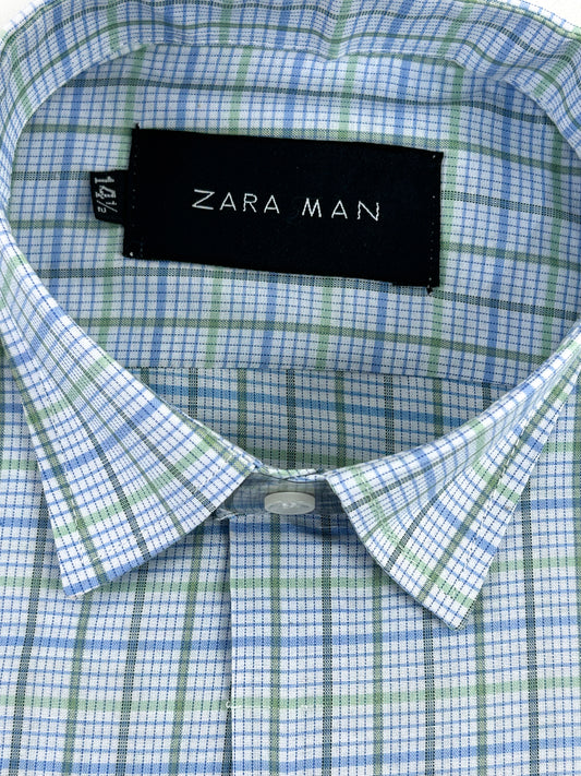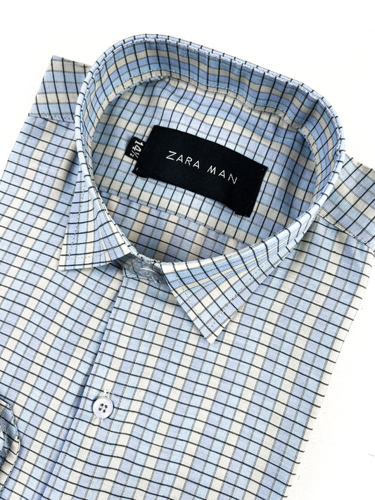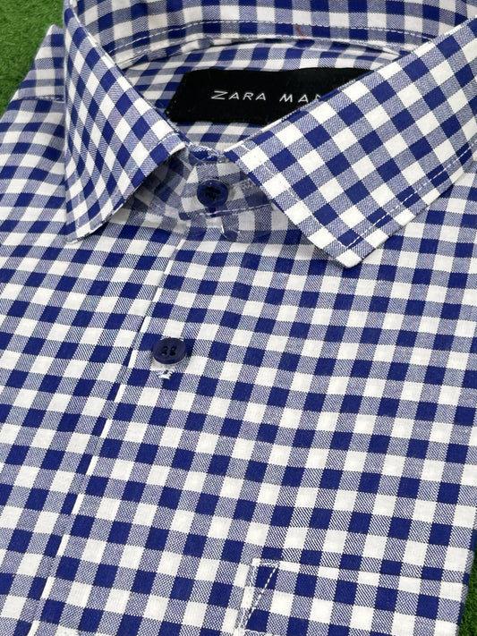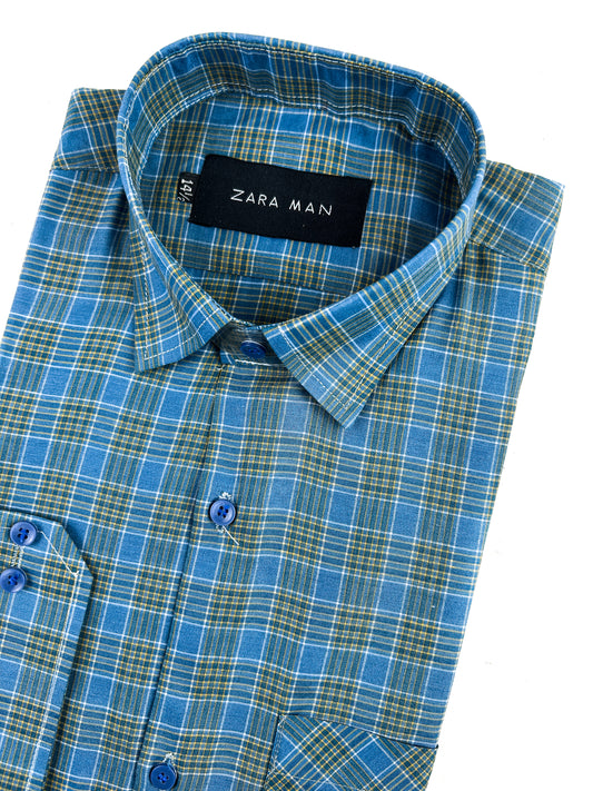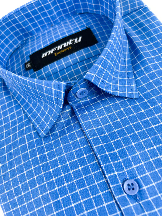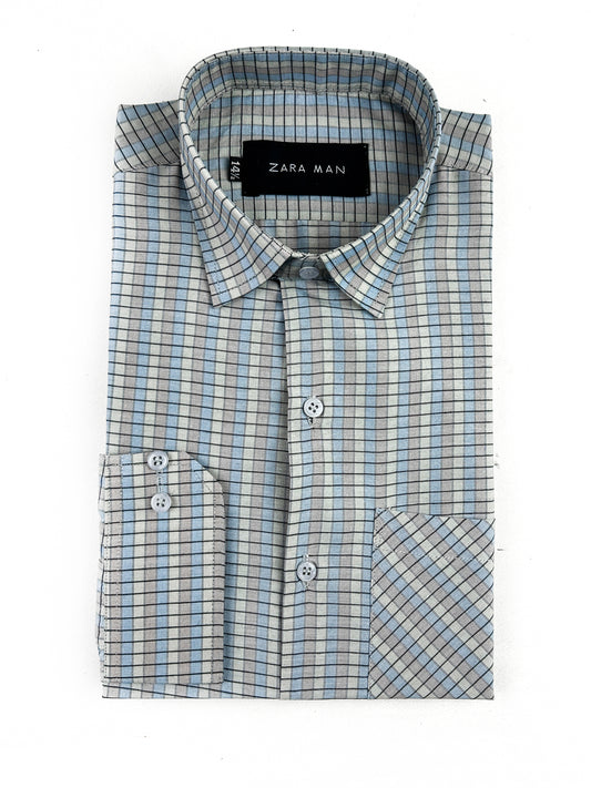 ZS Men's Formal Dress Shirt Blue Checks MFS416