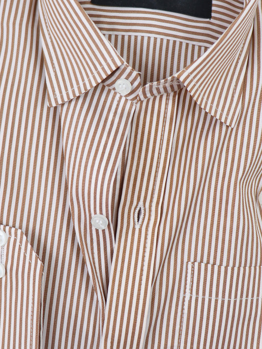 ZS Men's Formal Dress Shirt Brown Lines MFS401