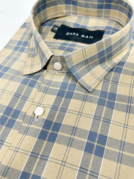 Fawn Checks Formal Dress Shirt For Men MFS393