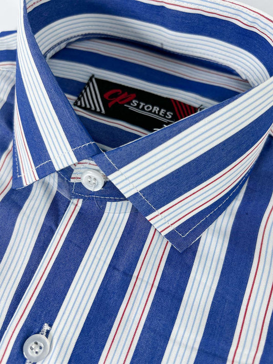 Blue Stripes Formal Dress Shirt For Men MFS404
