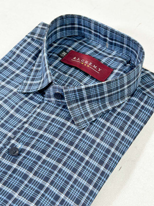 Blue Checks Formal Dress Shirt For Men MFS401