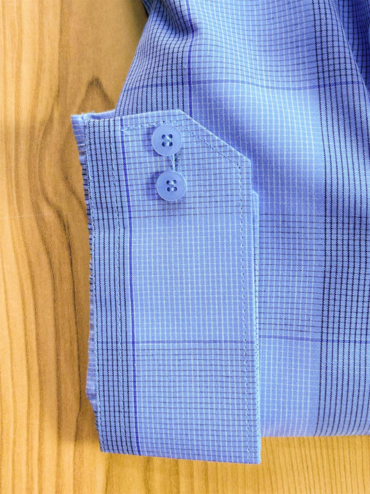 Sky Blue Checks Formal Dress Shirt For Men MFS394