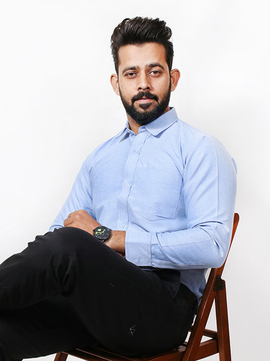AZ Men's Formal Dress Shirt Plain Sea Blue MFS363