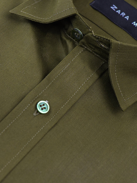 AZ Men's Formal Dress Shirt Plain Mehndi Green MFS376