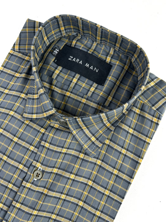 Grey Checks Formal Dress Shirt For Men MFS338