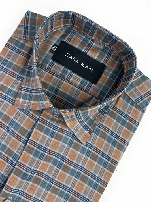Brown Checks Formal Dress Shirt For Men MFS327