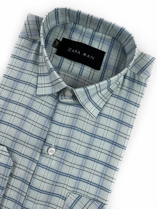 Light Green Checks Formal Dress Shirt For Men MFS329
