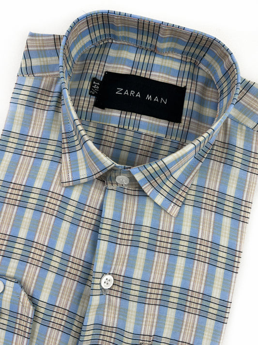 Blue Checks Formal Dress Shirt For Men MFS335