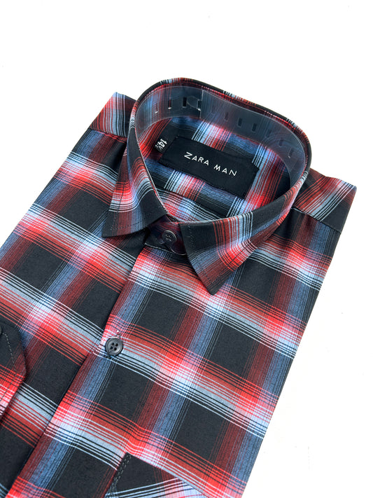 R Black Checks Formal Dress Shirt For Men MFS334