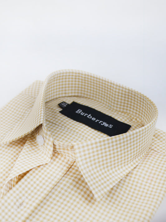 MFS12 Men's Formal Dress Shirt Yellow Checks