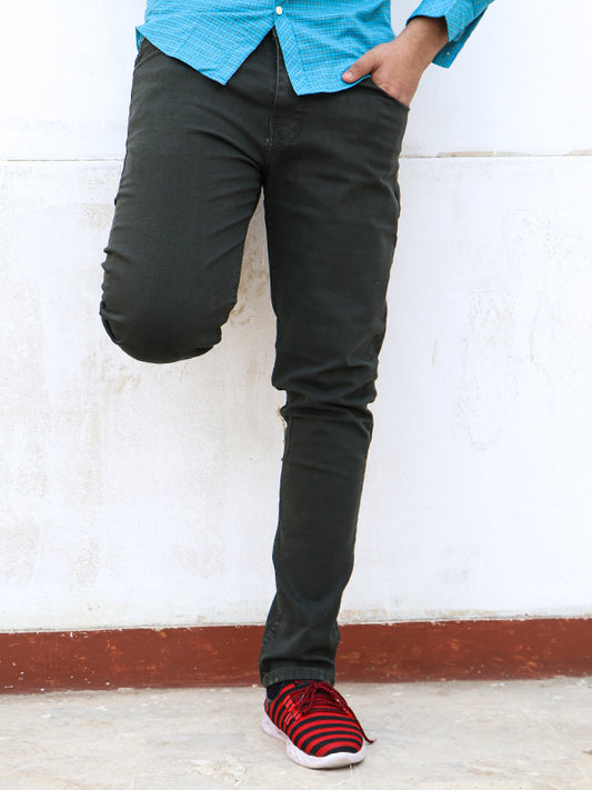 Dark Green Regular Fit Stretchable Jeans For Men MDJ22