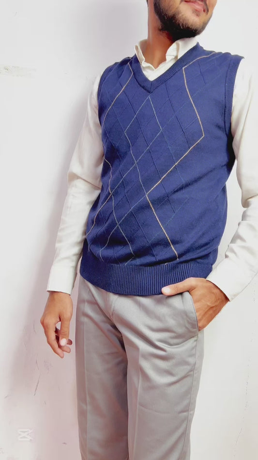 MSW20 Sleeveless Plain Sweater for Men Dark Blue