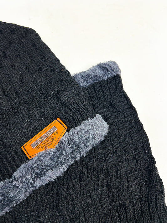 Black Beanie Cap with Neck Muffler/Neck Warmer Set BWC10